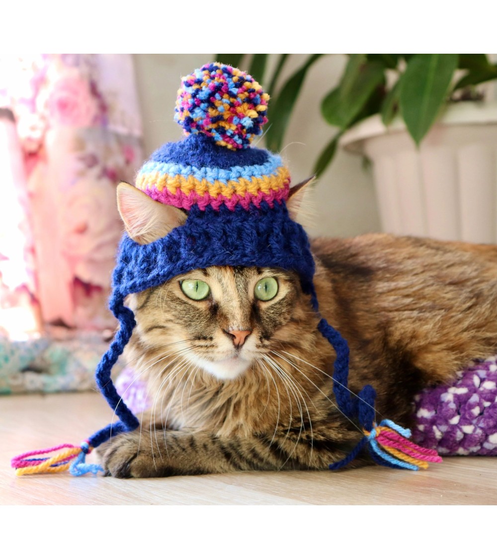 Pom-Pom Crochet Cat Hat
