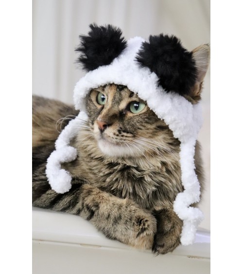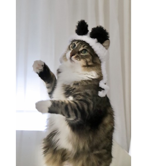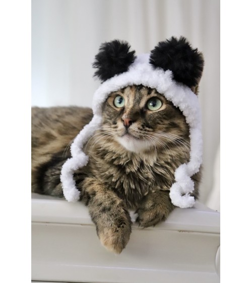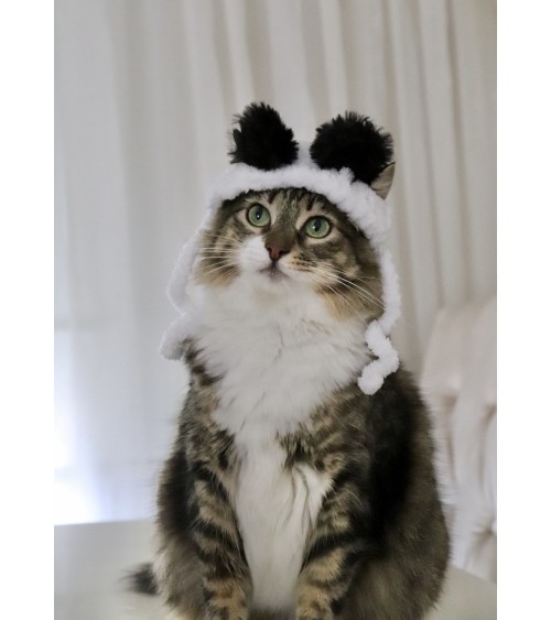 Panda-inspired design: Plush black ears on a fluffy white base for an instantly cute panda look.