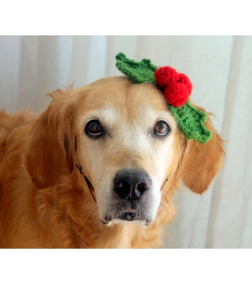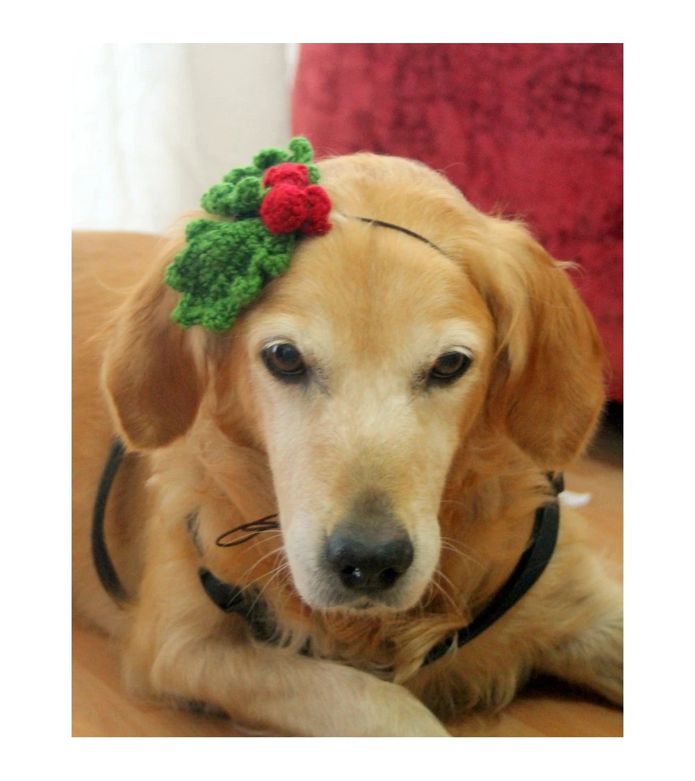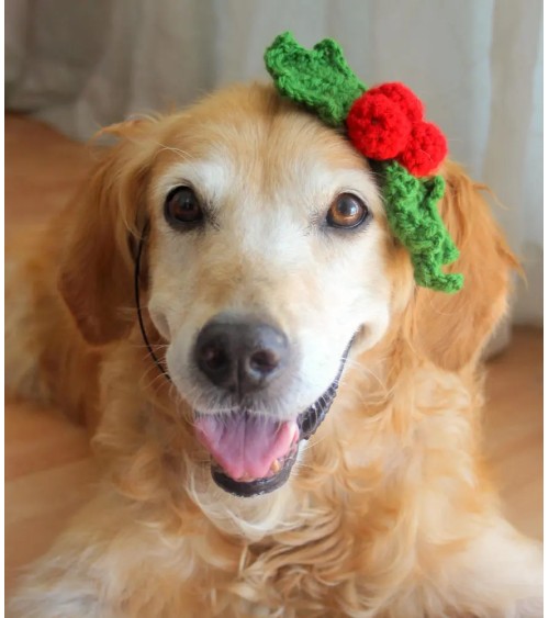 Christmas Holly Crochet Dog Headband1