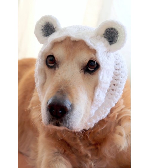 Adorable polar bear look: Soft white snood with rounded bear ears for an instant cute transformation.