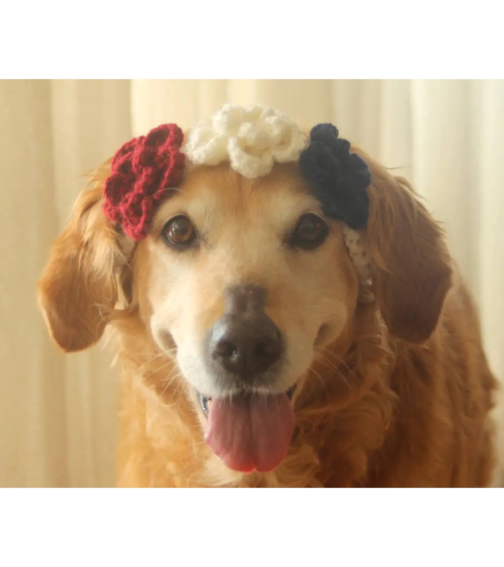 Patriotic Floral Crochet Dog Flower Crown