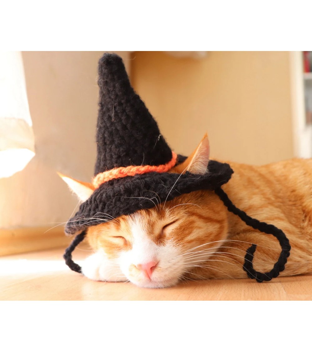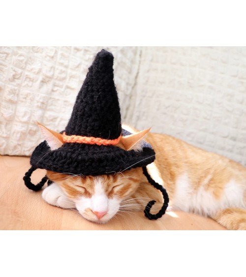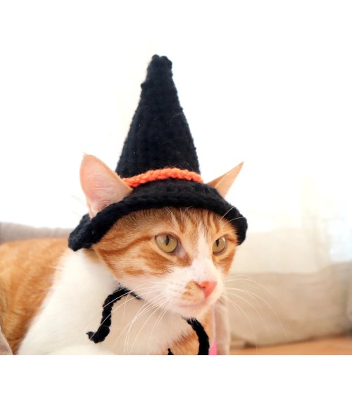 Black Crochet Witch Hat for Cats